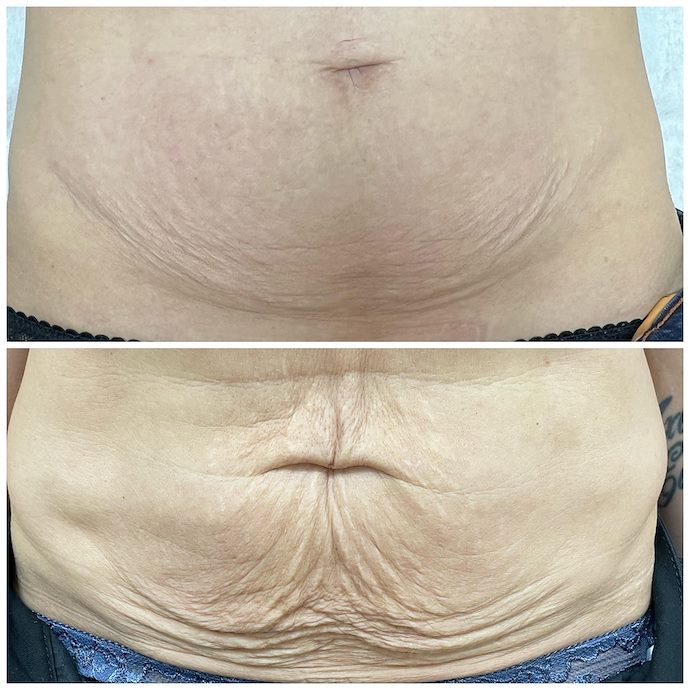 Behandling med fraktionerad koldioxidlaser är hittills den mest effektiva behandlingsmetoden på marknaden för huduppstramning/Skin tightening.